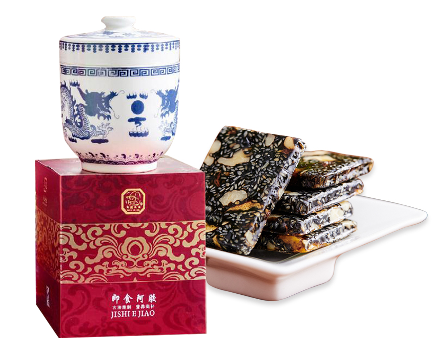 即食阿膠是根據(jù)唐代宮廷秘方“貴妃美容膏”組方所得,1920 年由東阿潤惠堂第六代掌柜任國興研制發(fā)明,形成現(xiàn)代固體形態(tài)、 方便攜帶和食用的“即食阿膠”(阿膠糕)。任國興隨之首創(chuàng)凝膠 成糕法,將黑芝麻、核桃仁、桂圓肉、紹酒、冰糖等… …